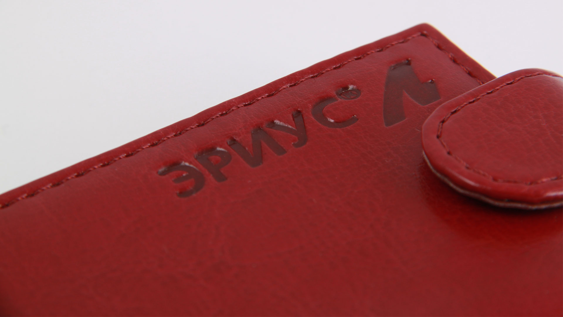 2. Тиснення — нанесення брендування на продукцію за допомогою спеціального кліше, що залишає рельєфний відтиск. Підходить для рівних та гладких поверхонь: шкіра, штучна шкіра, картон/папір з ламінацією та без.